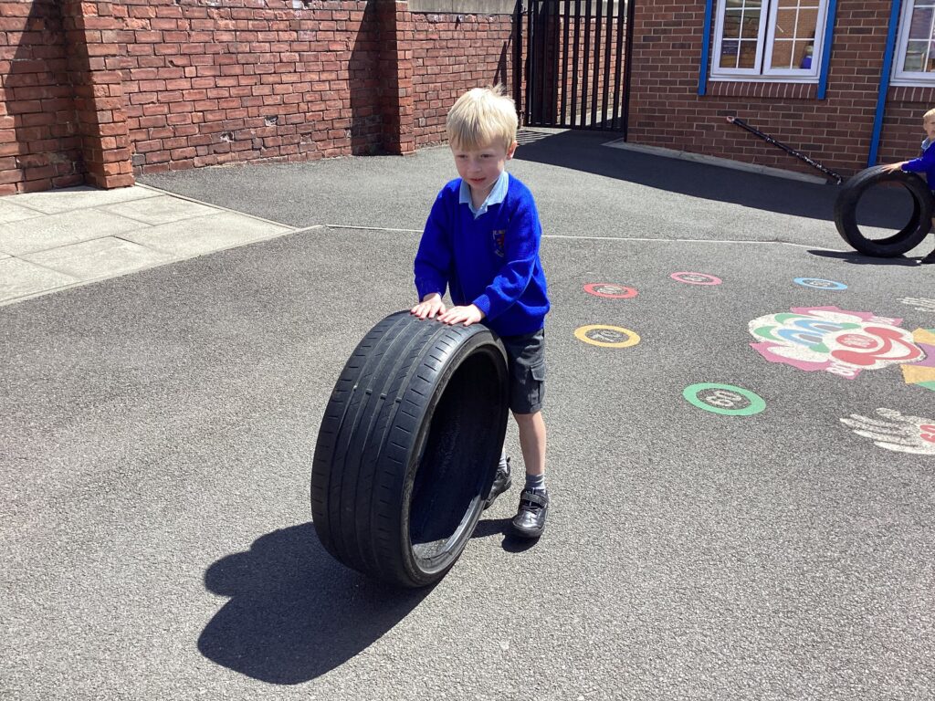 Even at this stage of the year we still ensure there are lots of gross motor activities including obstacle courses and tyre rolling. This helps to improve physical strength, co-ordination, and team work.