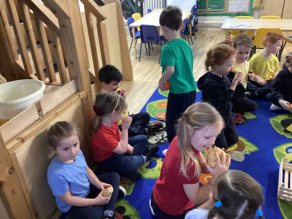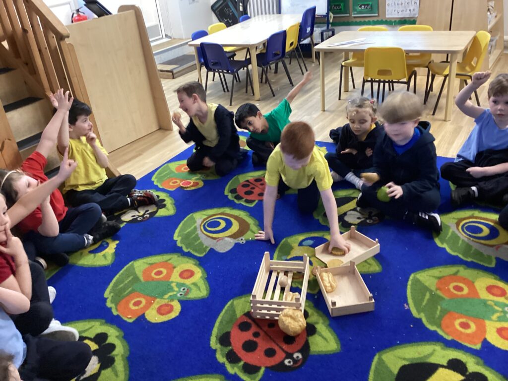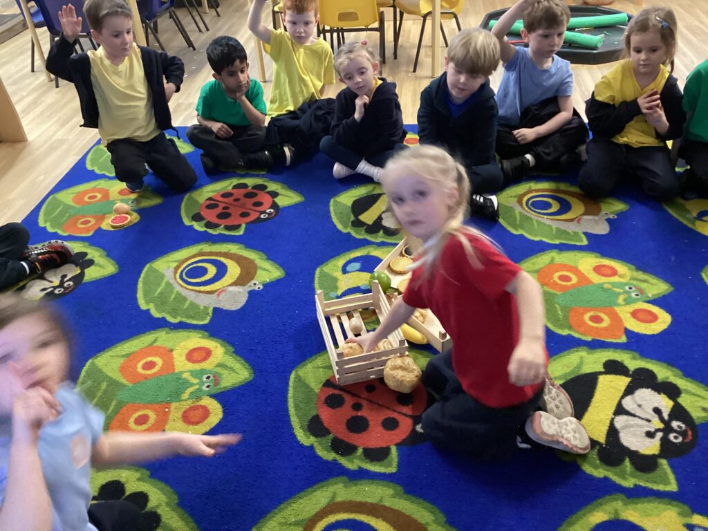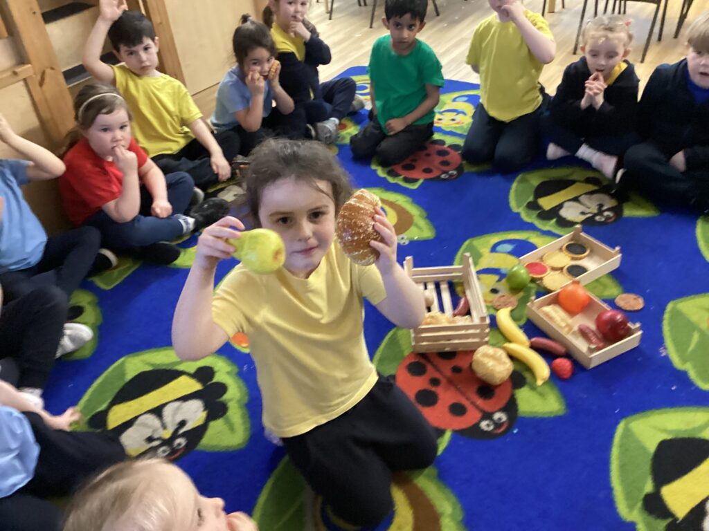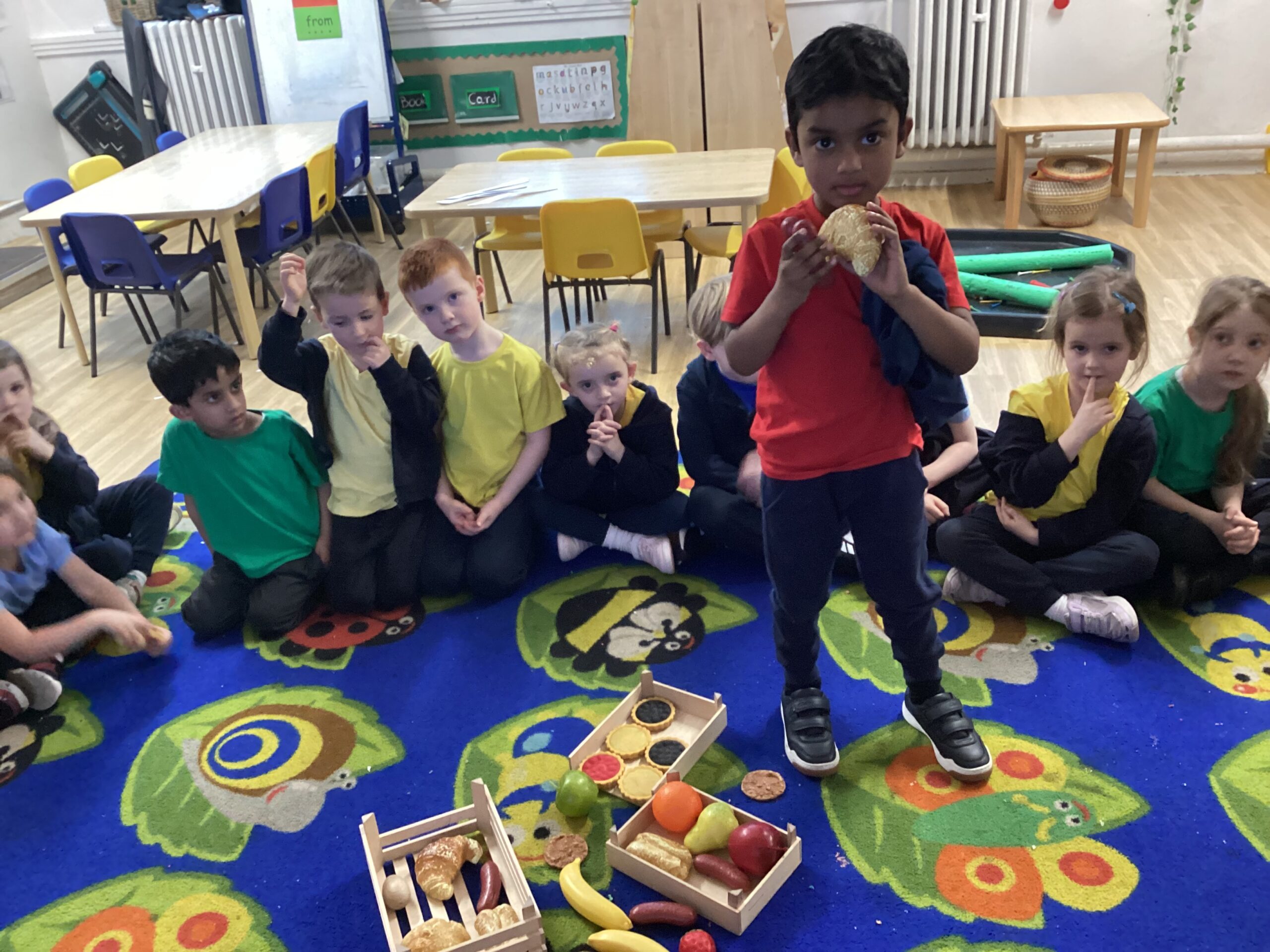 This week, we heard how Jesus came for everyone to show God loves each person. We reflected on last week’s lesson, Jesus feeding the 5000, and talked about how we are helped to call the poor and hungry. We looked at photos of people from around the world who are much less fortunate than we are. There was food laid out on the carpet and we were given a shopping list to follow. Eventually, there was nothing left so some people couldn’t get anything on their list. We realised that the solution to this problem was sharing.