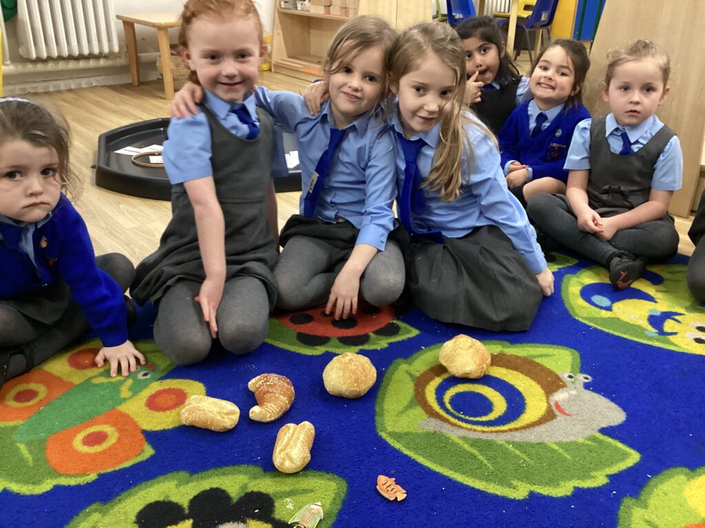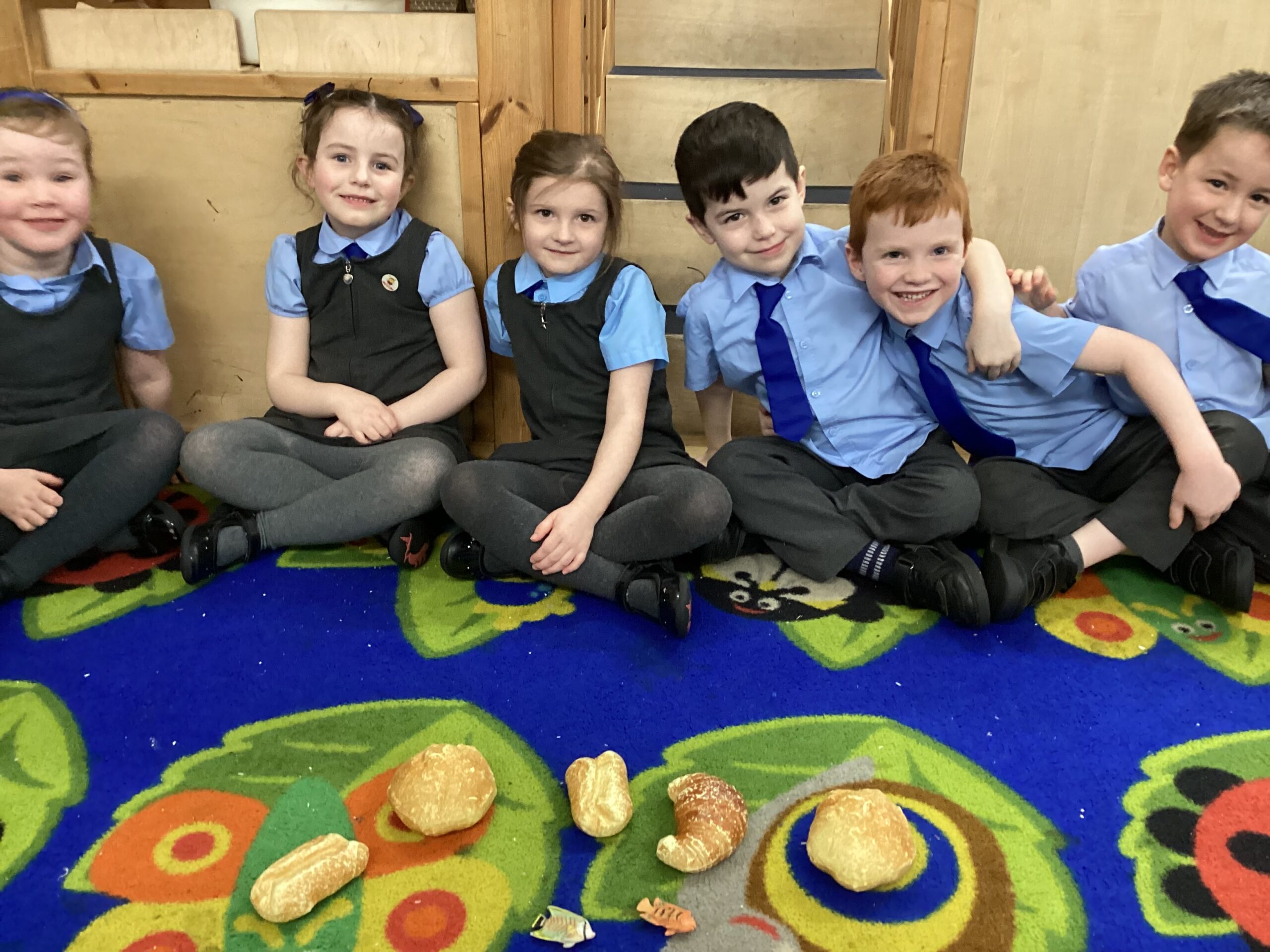 Yesterday, we marvelled at how you can share something out and still be left with more remaining. Mr Jobes had a square of card with four corners. He started cutting off pieces of card and sharing them among us. Even though the card was getting smaller, we counted more and more corners in total. We listened to the story of the loaves and the fishes and shared bread in such a way that one slice fed the whole class, with some left over.