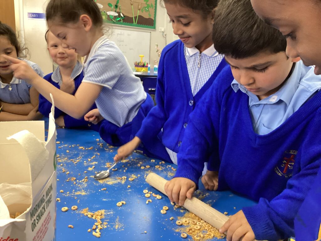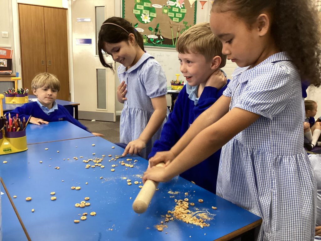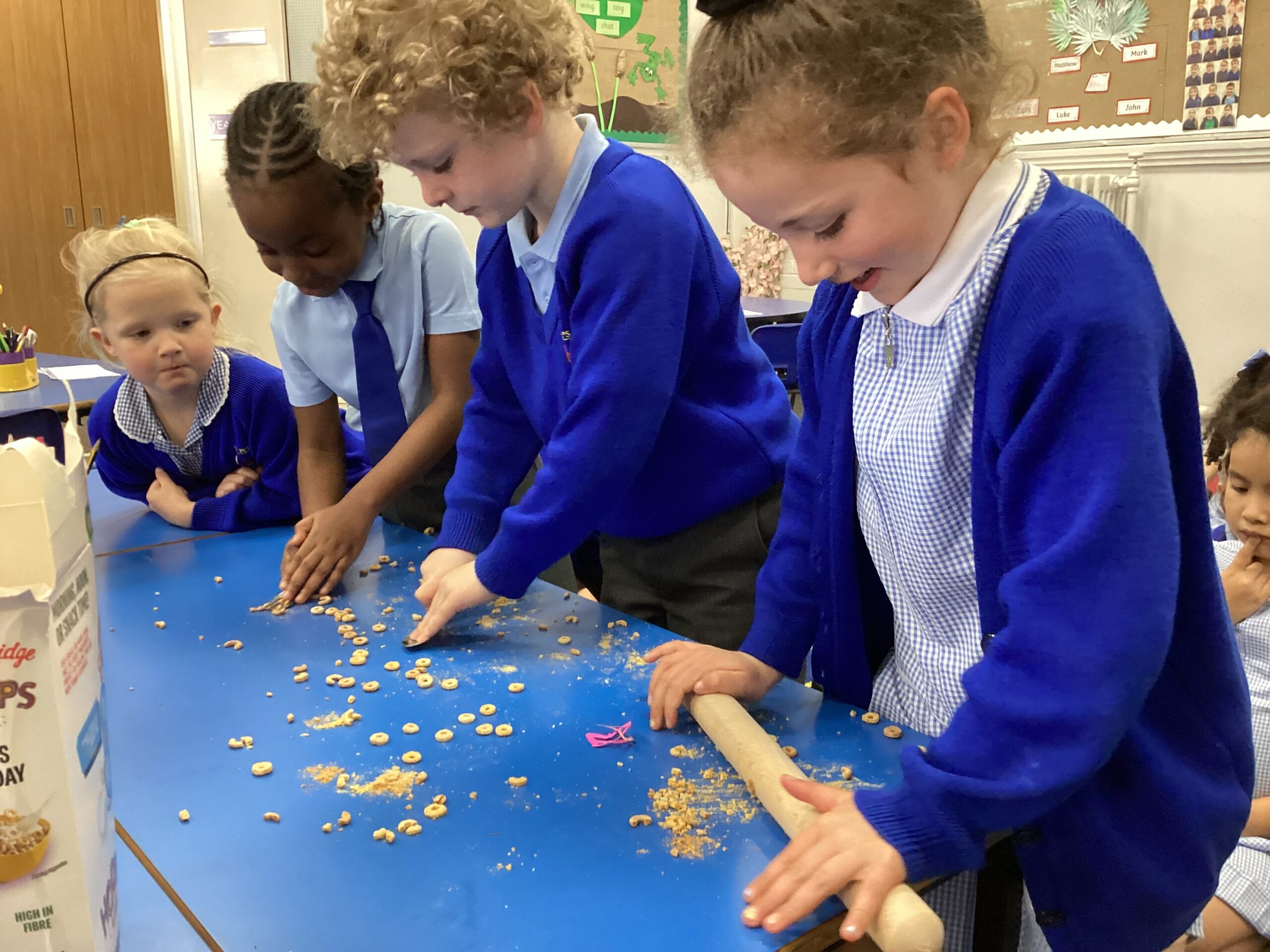 In Science, we are learning about different animal diets. This week we looked at a range of herbivores and what their diet was. We looked at their teeth and how they were different to meat eaters. We conducted an experiment using cereal and a range of tools to see which one crushed the food the best. We then recorded our results.