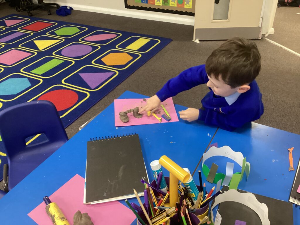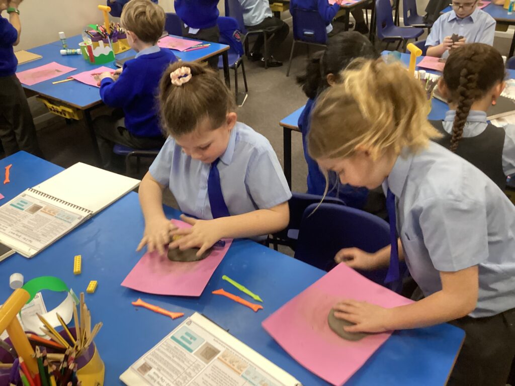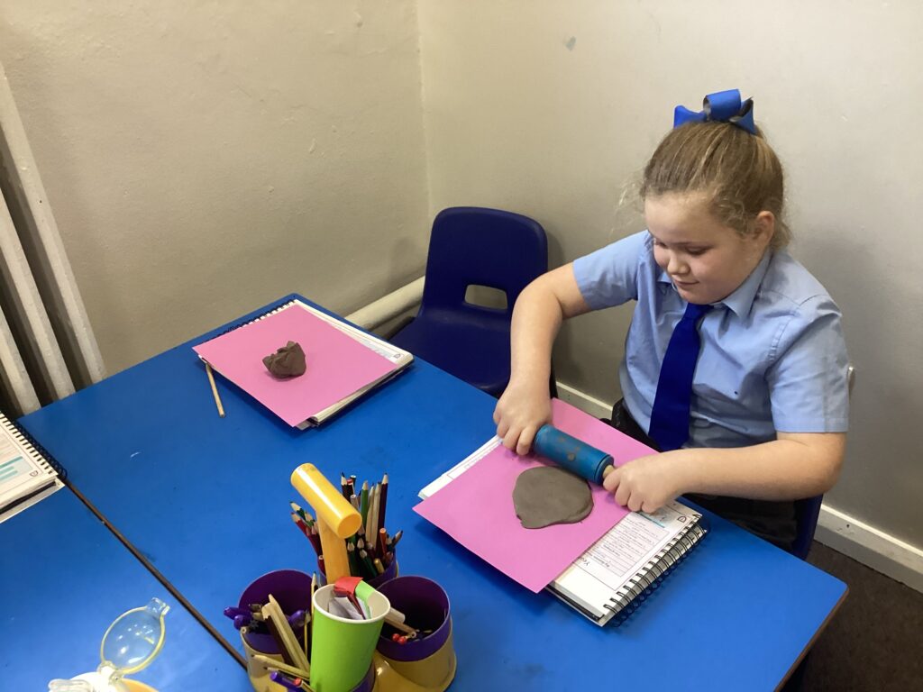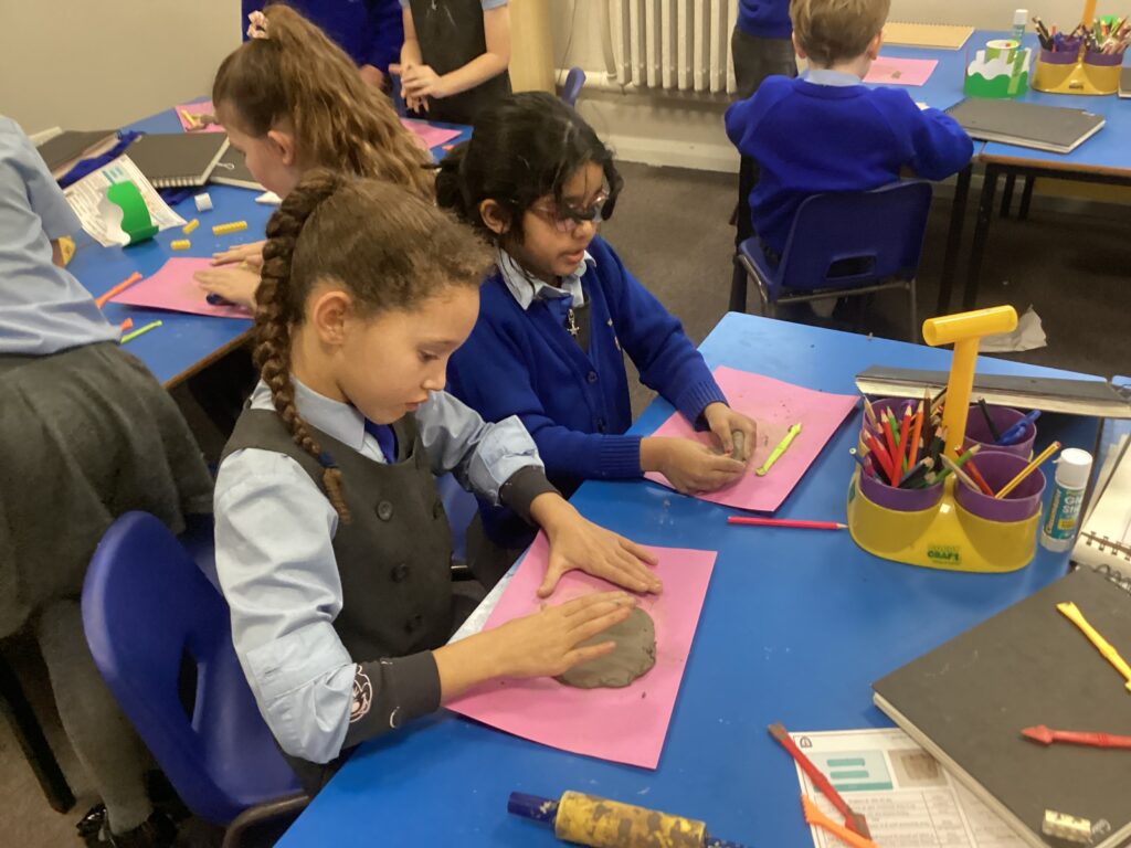 This week in Art, we began our new topic, ‘Clay houses’. In our first lesson we used our hands and different tools to experiment with the clay. We used our hands to make different shapes and different tools and objects to add texture and detail.