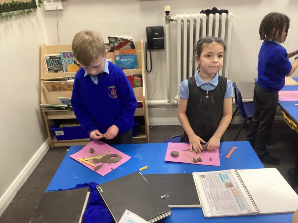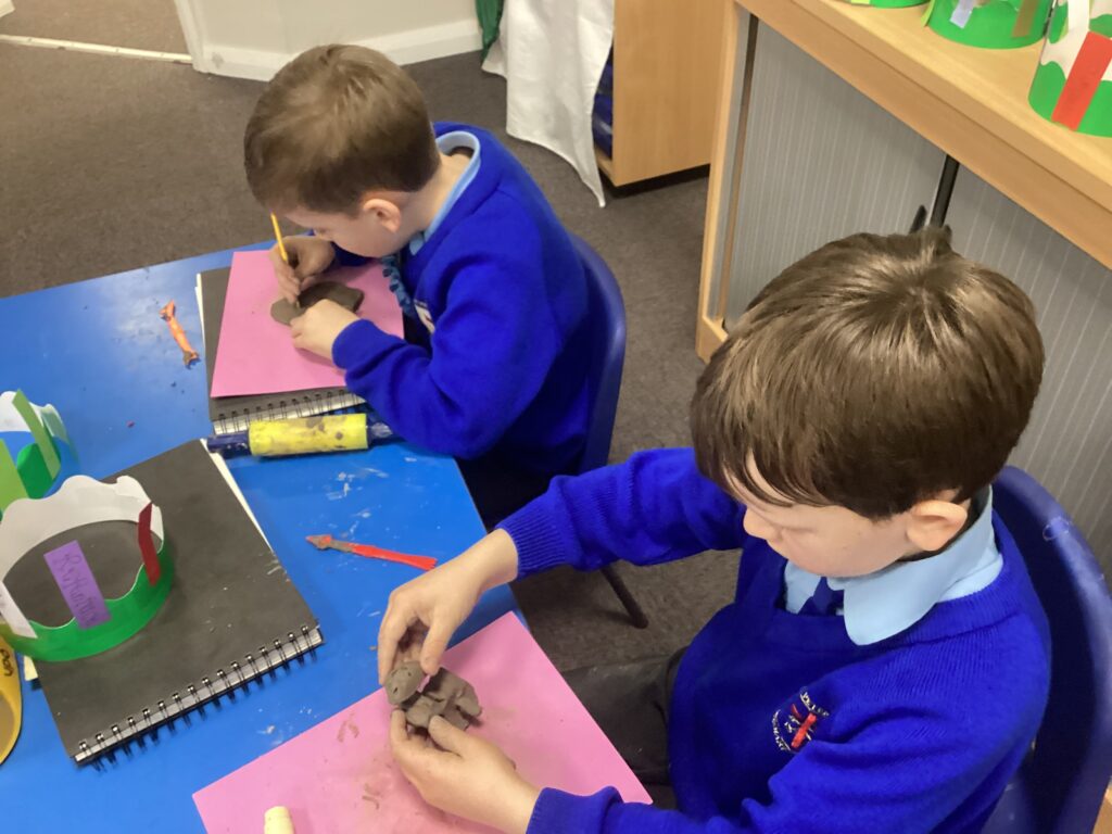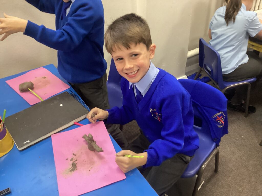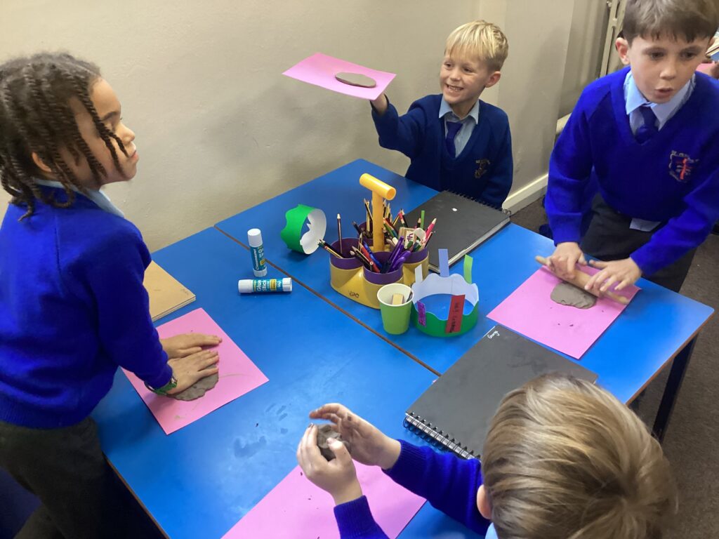 This week in Art, we began our new topic, ‘Clay houses’. In our first lesson we used our hands and different tools to experiment with the clay. We used our hands to make different shapes and different tools and objects to add texture and detail.