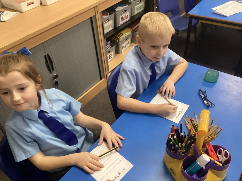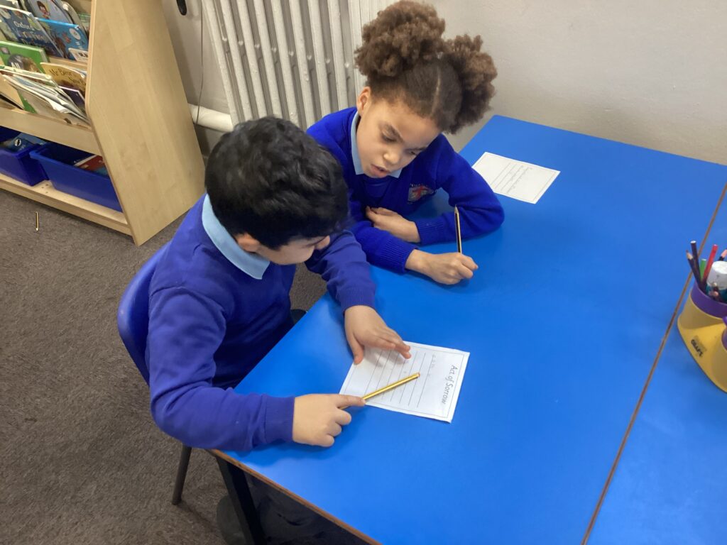 This week in our RE lessons we have been thinking about what it means when we say sorry. We explored how everyone can cause hurt by doing wrong but that we can ask for forgiveness by saying sorry to the person we have hurt and to God. We looked at prayers of sorrow that seek forgiveness from God and made our own prayer cards using petitions from the Our Father and examples of Acts of Sorrow prayers.