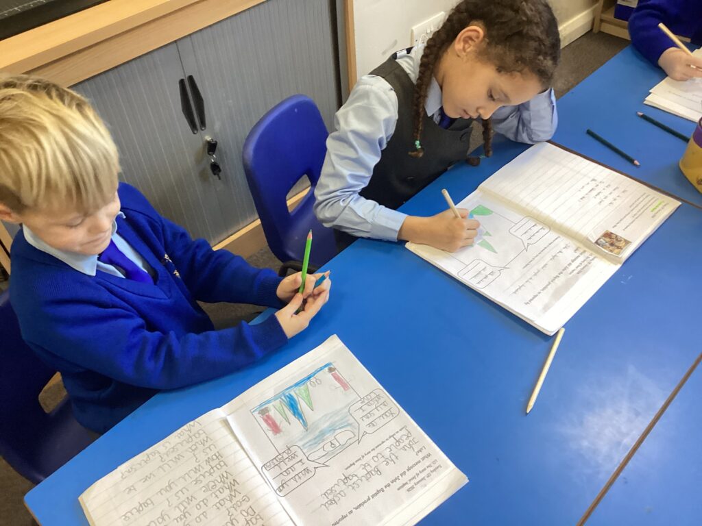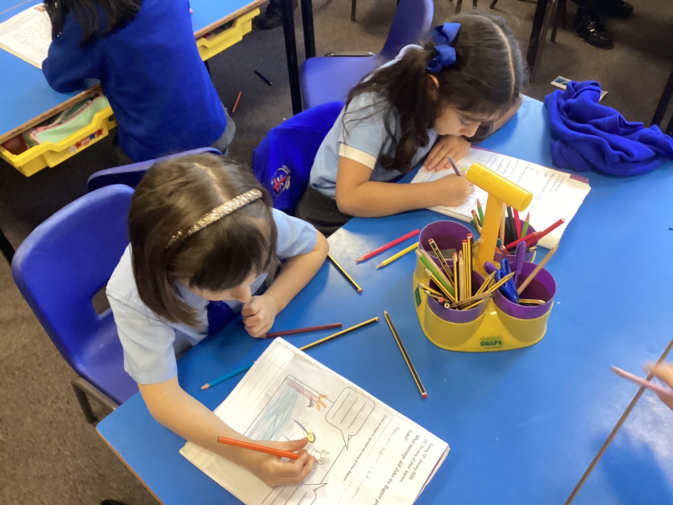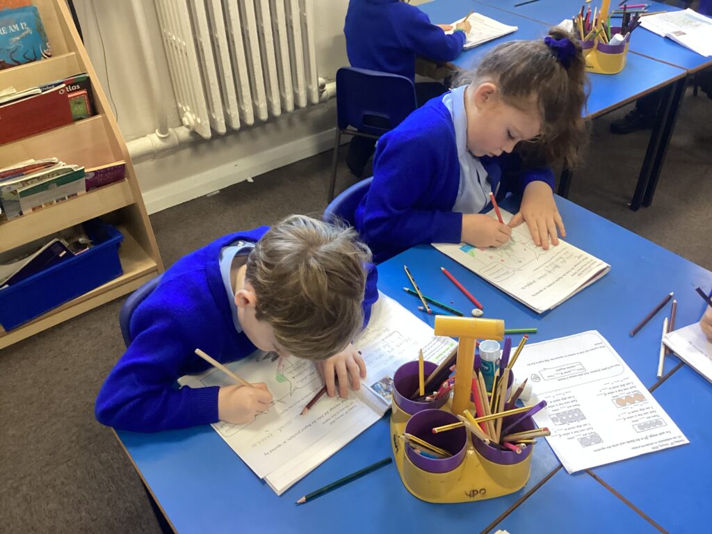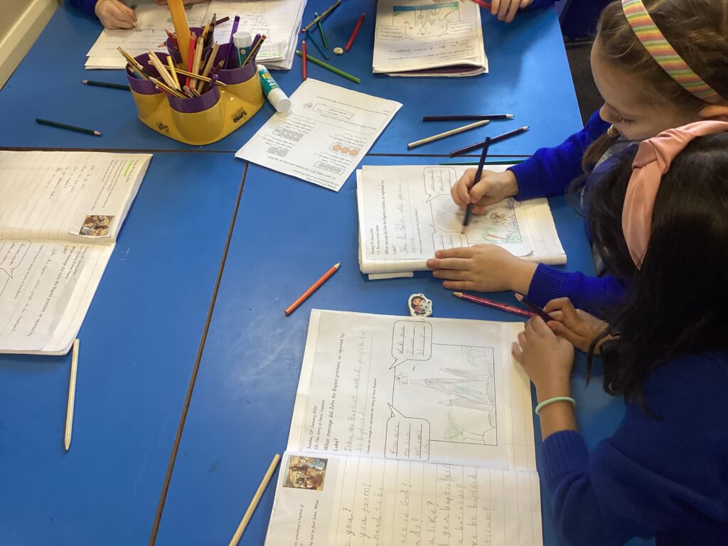 This week in our RE lessons, we have been learning about Jesus’ baptism. We heard in Luke’s gospel how the Father, Son and Holy Spirit were all present at the baptism. The Holy Spirit appeared as a dove and God’s voice could be heard saying ‘You are my son, whom I love. With you I am well pleased.’ We created our own images to represent the story, showing how the Father, Son and Holy Spirit were all present.