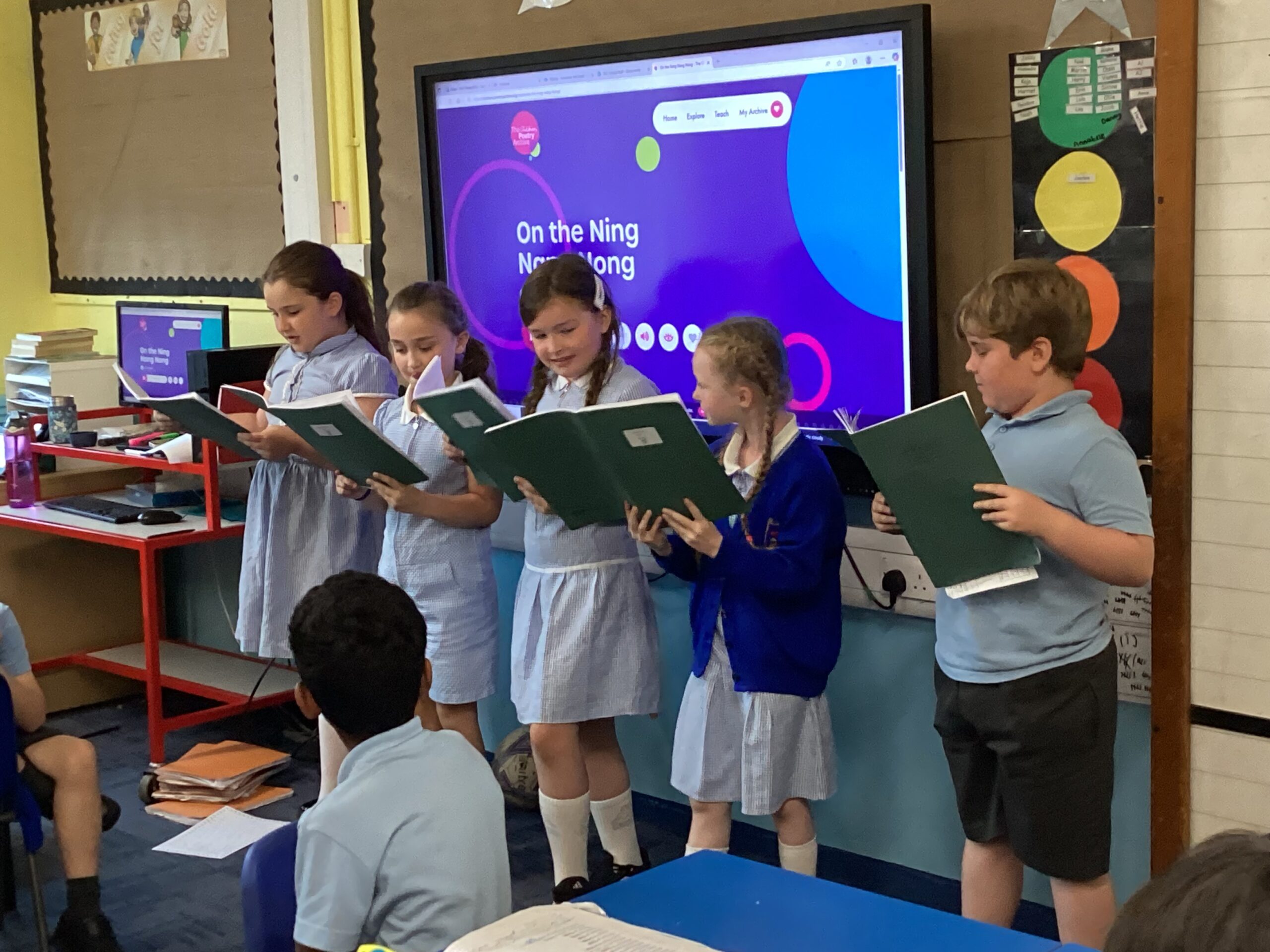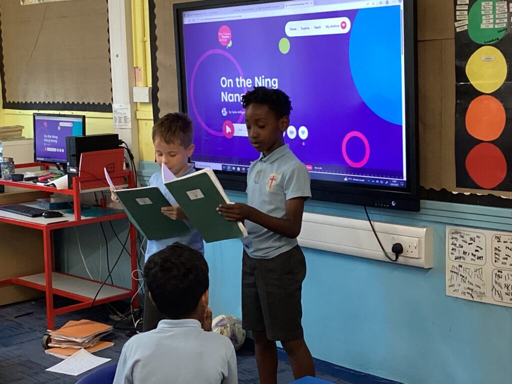 Today we learnt about the nonsense poem ‘on the Ning nang nong’ by Spike Milligan. We looked at the features and found that it was completely ‘wacky’ and made no sense. We highlighted rhyming couplets and looked for onomatopoeias. After this, we rehearsed the poem and performed it to the rest of the class.