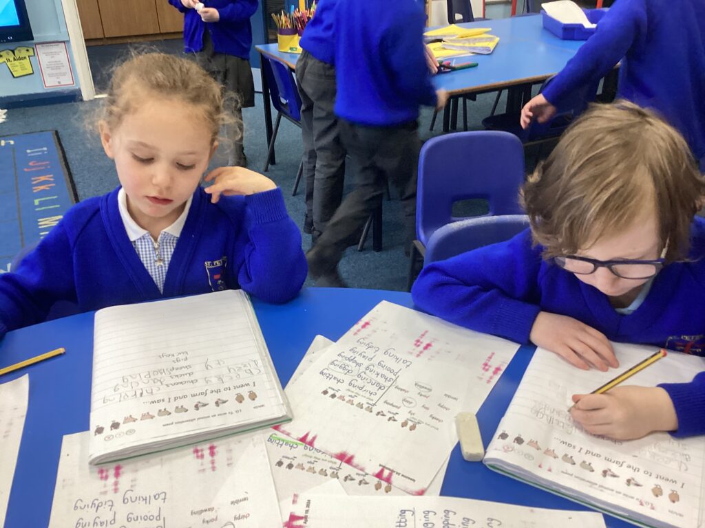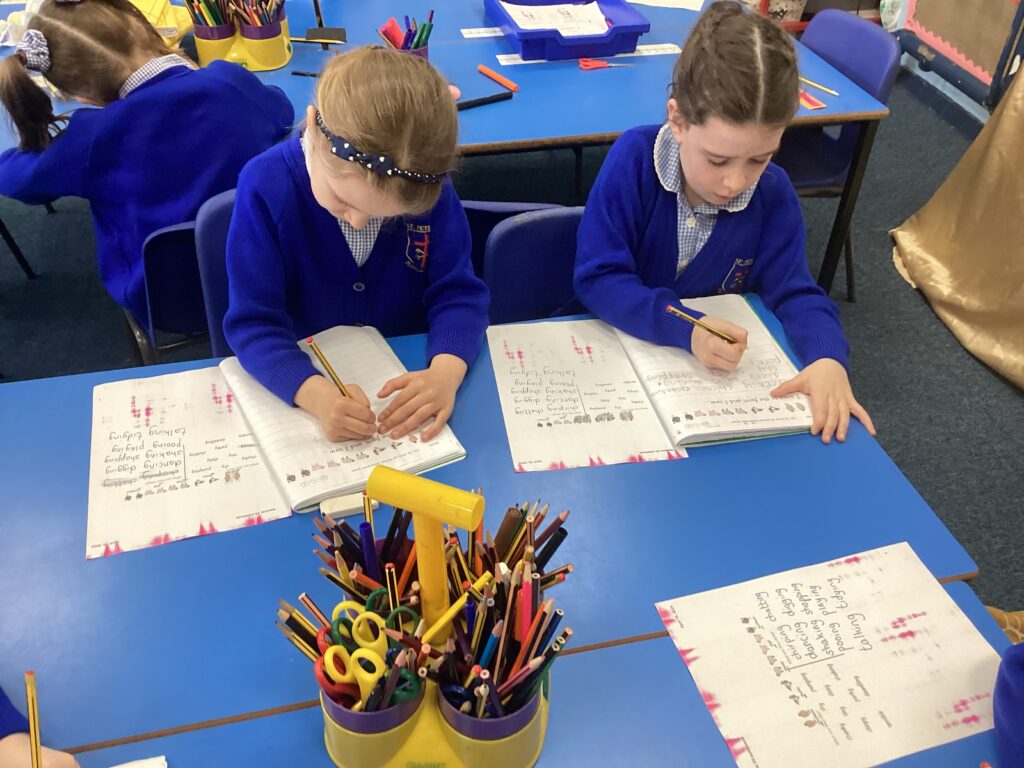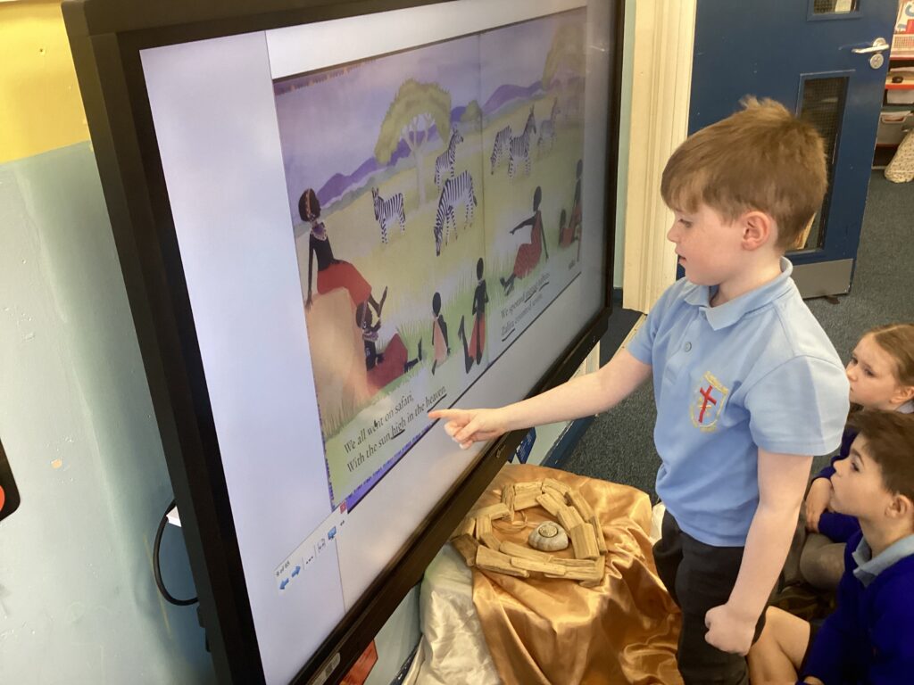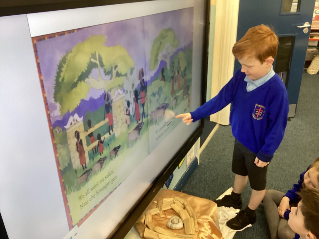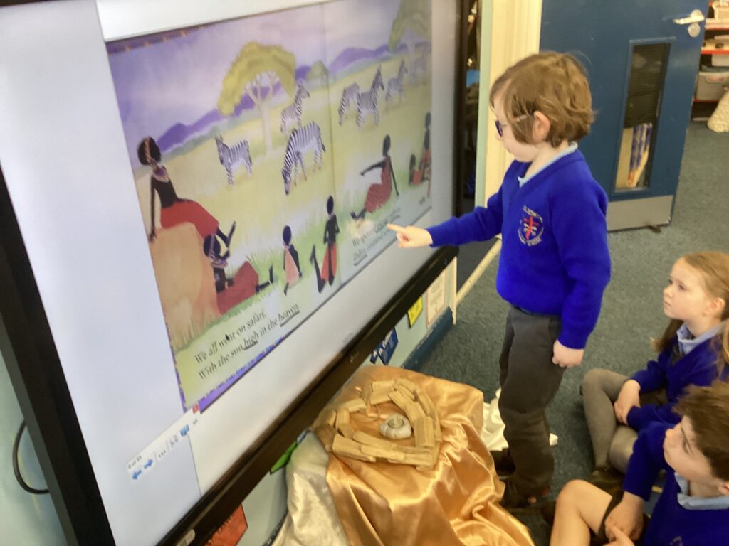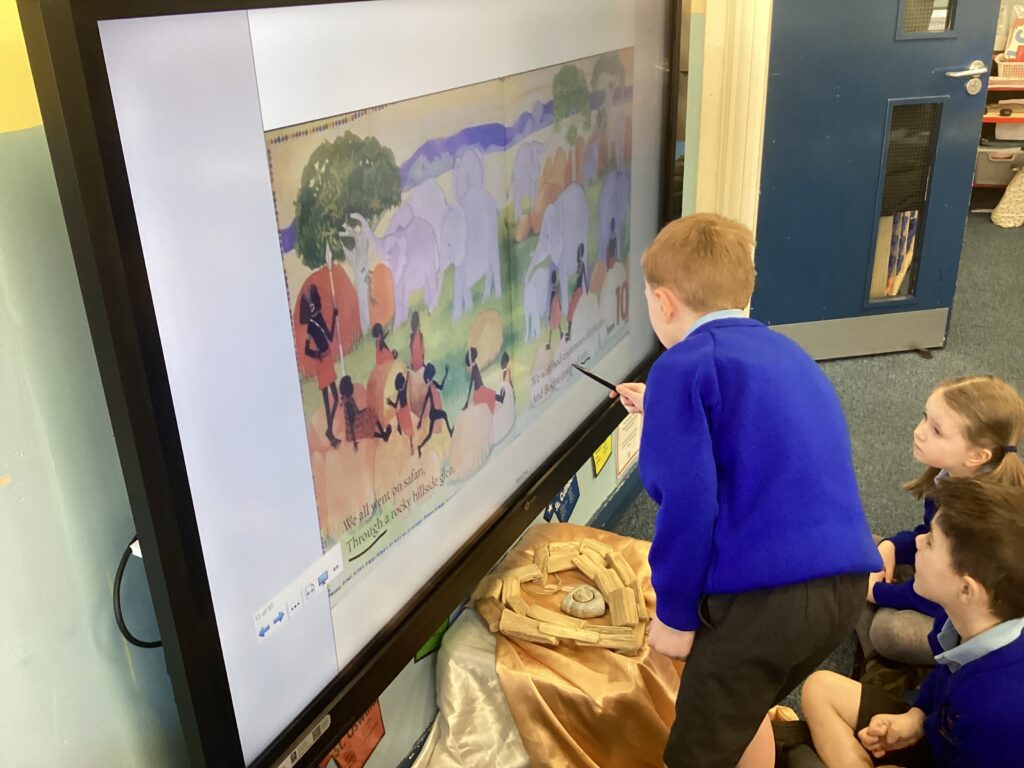 This week we read the story ‘We all went to Africa.’ We spotted lots of examples of alliteration in the story and used our own ideas to write alliteration poems about animals we might see at the farm.